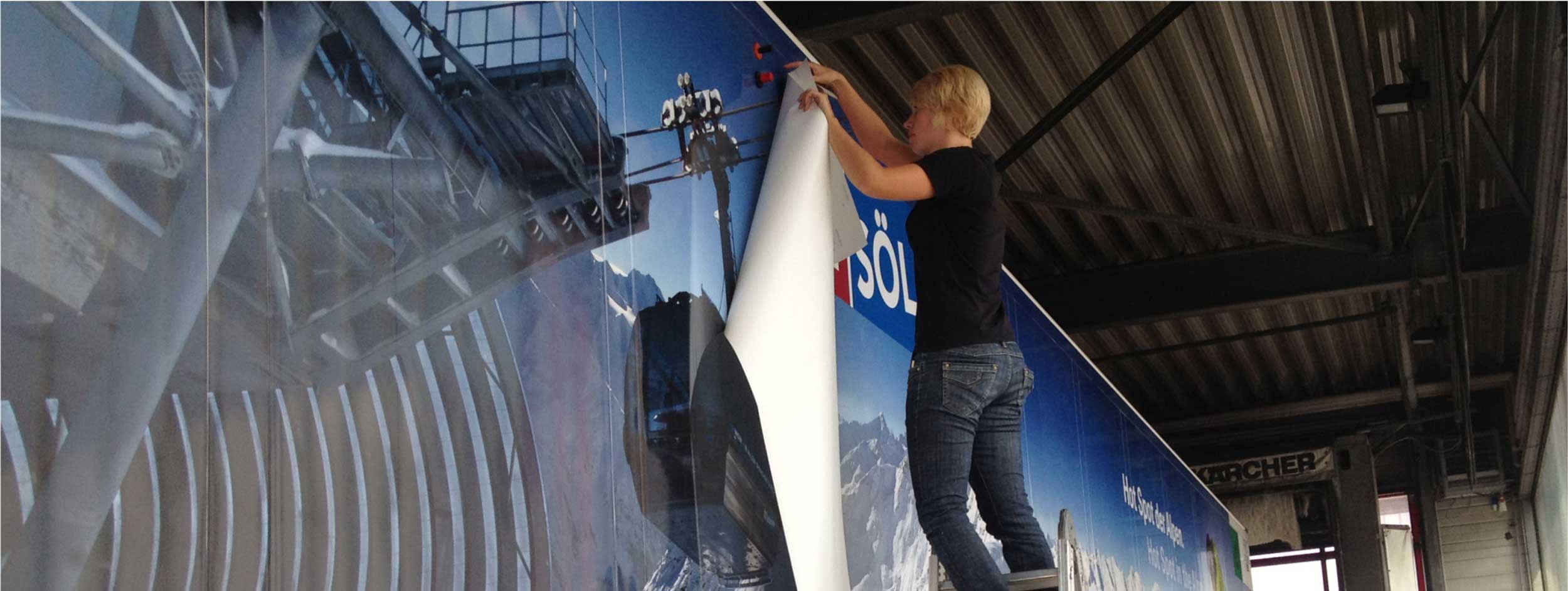 Wir produzieren auf Lösemitteldruckern und Flachbettplottern Folienprints