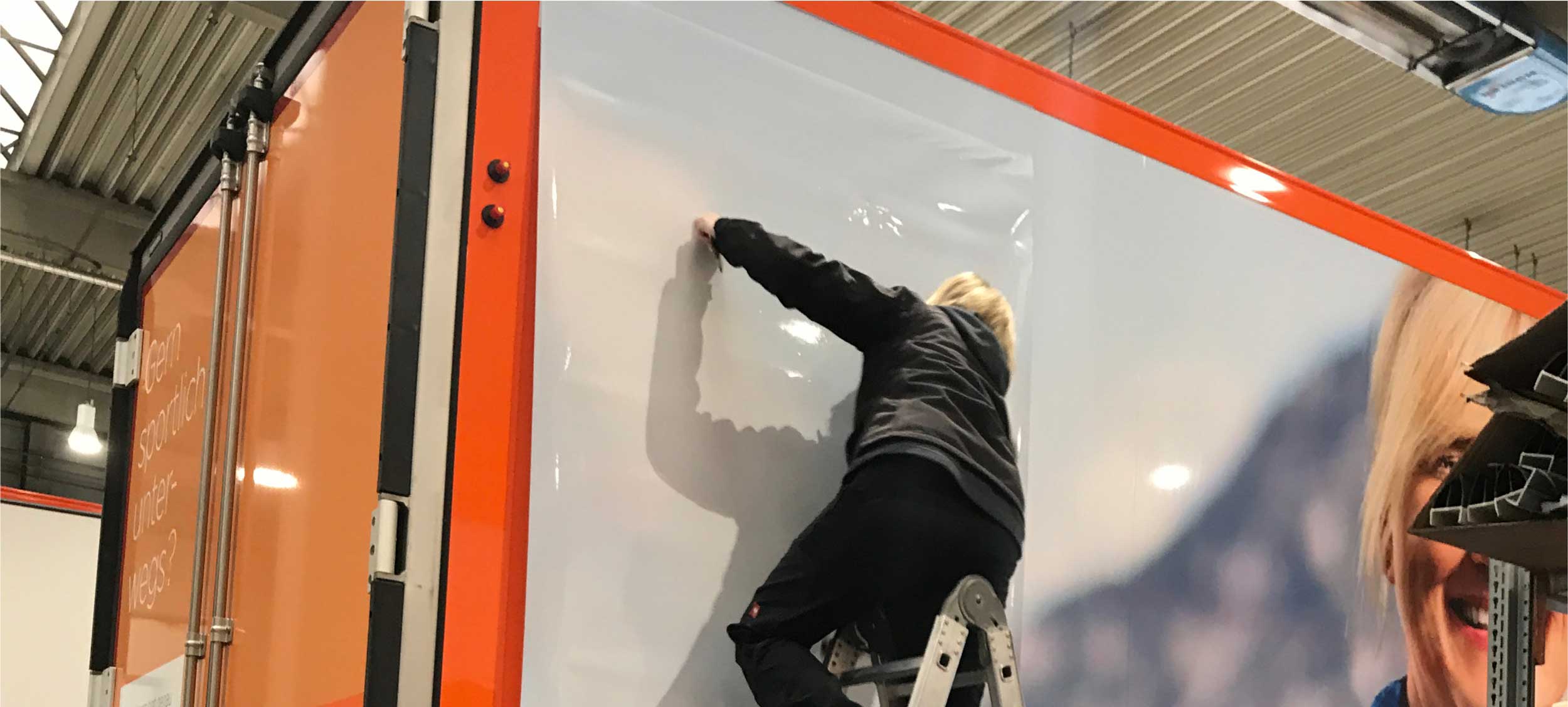 Die Montage der Folien führen wir vorzugsweise in unseren Räumen und Fahrzeughallen durch. Auf Wunsch und gegen Rücksprache montieren wir bei geeigneten Bedingungen die durch uns produzierte Beschriftungen und Werbeanlagen gerne auch vor Ort.